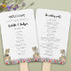 Delight your guests with this funny dinosaur themed wedding day program fan with funny T-Rex bride and groom in a colourful prehistoric wildflower meadow. Easy to customise with the bride and grooms names, the wedding date and all the wedding day ceremony details in modern typography script. Fun Tyrannosaurus Rex bride and groom dino and watercolor floral illustrations in blue pink purple yellow orange and green hues. Unique original dino artwork by artist Catherine Sweetman