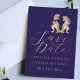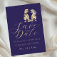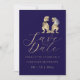 Designed for fun-loving couples, this unique card showcases charming watercolor illustrations set against a rich navy blue background. The playful artwork is beautifully balanced with modern typography and elegant script, creating a stylish yet lighthearted design that stands out from traditional wedding stationery.