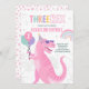 Dinosaur Three Rex 3rd Birthday Party Pink T-Rex Invitation