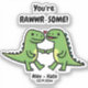 Dinosaur valentines features green dino couple in love with phrase You`re rawwr-some