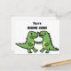 Dinosaur valentines greeting card features green dino couple in love with phrase You`re rawwr-some
