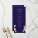 Funny Dinosaur Wedding Menu navy blue and white with T-Rex Bride & Groom Custom Jurassic-Themed dino wedding menu