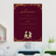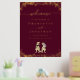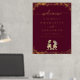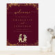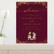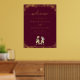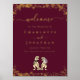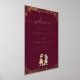 Dinosaur Theme Wedding Welcome Poster Sign burgundy wine & Gold Foil with T-Rex Bride and Groom Jurassic Dino
