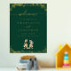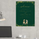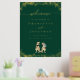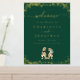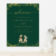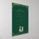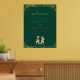 Dinosaur Theme Wedding Welcome Poster Sign dark emerald green & Gold Foil with T-Rex Bride and Groom Jurassic Dino