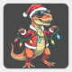 Dinosaur Wrapped with Christmas Lights Santa Hat Square Sticker