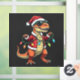 Dinosaur Wrapped with Christmas Lights Santa Hat Window Cling