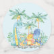 Colourful jungle scene cute dinosaurs featuring a grouping of dinosaurs with palm trees & jungle leaves set on a blue background for a boys baby shower.