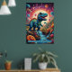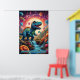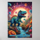 This dinosaur could belong to an imagined species from a cosmic realm, where flora and fauna thrive in vibrant, psychedelic ecosystems, blending prehistoric life with a space-age twist. Its demeanour exudes innocence and wonder, as though it’s exploring its fantastical universe for the first time.