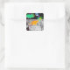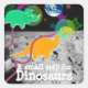 Dinosaurs on the Moon Stickers. Two cute little cartoon dinosaur friends green Triceratops and orange Diplodocus in space on the moon with colour stars and a beautiful blue planet earth square sticker with customisable text "A small step for Dinosaurs". These colourful dinosaurs in space stickers are fully customisable, add your texts and images! A beautiful cartoon animal gift for the big little dinosaur fans!