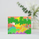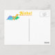 Cute Dinosaurs Sunset Postcard. Three adorable cartoon dinosaur friends green Stegosaurus, orange Diplodocus and yellow Triceratops on a tropical beach with palms at sunset. This cute sunny card is fully customisable, add your text and images. A cute cartoon animal postcard for the big little dino fans!
