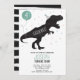 All the text is editable on the invitation. Perfect for a modern Dinosaurs theme. Features green foliage, dinosaurs, t-rex, balloon and confetti.