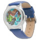 The blue band is the right color for a boys watch. My grandson loves lacrosse and the watch is easy to put on. He is ten years old. The lacrosse picture is very clear and I like the blue hands on the watch. It's good for teaching time.