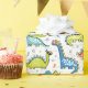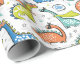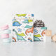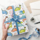 Dinosaurs with superhero masks, capes and text wrapping paper