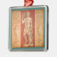 Square premium ornament with a torn-edged image of Dionysus, god of wine and wine making and ritual madness, holding a bowl of grapes while posed on red between two decorative urns on gold. See the entire Toga Ornament collection in the SPECIAL TOUCHES | Party Favors section.