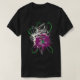 I give wanted to give this a 4 instead of a 5 because these Basic DARK T0shirts run unexpectedly SLIM or Narrow. Which is great if you do not have a potbelly, but I have a paunch. It isn't the shirt's fault that I've got a beer belly. The design and shirt itself is a quality cotton shirt. The color is more of a deep purple, but still a very pretty color. The Basic DARK T-shirts run a bit SLIMMER than the Basic Ts. The neck is a fraction narrower (or seems to be narrower) also. I'm a paunchy middle-aged woman and my neck is 12 inches (31cm) thick and the neckline fell about the same as in the photo of the man, and I had the desire to tug it a bit. So if you're a thick necked man or like loose shirts, be aware these are slimmer shirts. Once I get rid of my lockdown paunch it'll look great. The shirt washed well in cold water with no apparent bleeding. We don't have a dryer, so it hung dry. Did not shrink. Love the colors and the design. The design looks smaller on my shirt than it does on the model on-line. But still, it looks good on the shirt. The printing looks as it does on the model, just the size seems fractionally smaller. Washed garment in cold water, hung dry and design appeared unaffected.