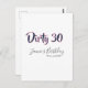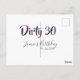 Dirty 30 happy birthday name date pink gray callig postcard