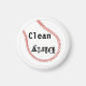 Painting of a baseball, with the words dirty and clean, printed on dishwasher magnets. The work dirty looks scraggly and the word clean looks neat and trim. You can choose your size and shape.