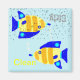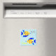 Computer drawing and painting of two yellow and blue fish, with clean dirty, printed on dishwasher magnets. The dirty section is decorated with dirty bubbles. You can choose from round or square magnets.