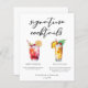 This chic signature cocktails menu sheet features custom black typography above 2 drinks and their ingredients for your wedding bar. A cute Dirty Shirley Temple and Piña Colada drawing add a cool flair to your bar menu. Complete with the couple's names and date for their reception.