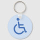 Keychain or keyring featuring a blue disabled sign or handicap symbol with a handicapped man sitting down in a wheelchair. The classic symbol used for handicap parking, toilets for disabled and handicapped persons and more. Also available in other colours.