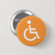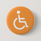 Button featuring a white and orange disabled sign or handicap symbol featuring a handicapped man sitting down in a wheelchair. This symbol is used for handicap parking, toilets for disabled and handicapped persons and more. Also available in other colours.
