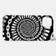 Black and white graphic design featuring disc golf chains spinning into infinity.