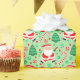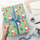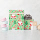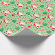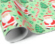 Creative disc golf holiday gift wrap featuring funny Santa playing frisbee golf surrounded by red and green Christmas candy, cookies and frolf joy for the holiday season.