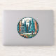 Ai art depicting a disc golf field in the woods with a vintage vibe in turquoise, orange and green.