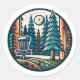 Disc Golf in the Woods Retro Vibe Art Classic Round Sticker