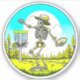 A skeleton playing disc golf in the woods. Retro pop art cartoon style.