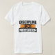 Minimal graphic design featuring the phrase “Discipline Over Motivation” in bold lettering. The composition uses a strong comparison symbol and a contrasting accent color on a dark background, creating a clean, structured look with high visual clarity. Suitable for apparel and accessories.