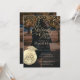Gold glitter graduation cap, disco ball and confetti on black background.
