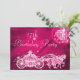 Personalised, elegant custom 17th Birthday invitations. Beautiful hot pink double sided invites for birthdays with a funky retro disco mirror ball and glamourous printed image rhinestone glitter, sequins jewels sparkle royal Princess carriage / coach with crown / tiara and horses on a vibrant pink and white lights and sparkles background. There is a beautiful music musical note and high heels stiletto shoe / glass slipper on the reverse of the invites. Magical, chic, classy, cute, girly, modern, contemporary, feminine invitations with trendy, fashionable colours. These groovy, stylish, sophisticated, pretty invites are decorated / printed on both sides. Perfect invitations for Princess themed lavish, luxury birthdays. PLEASE NOTE: All invitations on Zazzle have flat printed images. If you need any assistance customising your product please contact me through my store and I will be happy to help.