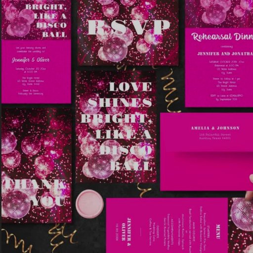Do you love the 80s? Do you love disco balls? The Disco Ball QR Code Photo Hot Pink Orange Wedding Invitation colourful disco balls and pink glitter. This chic pink and orange wedding invitation is perfect for a fun, funky, retro-themed wedding. You can add an image/photo and a QR code.