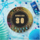 A vibrant and colourful disco Birthday round paper plate.
