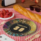 The name and age is customisable for your Guest of honour in the centre of the plate with gold on black in a round circle frame.