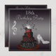 Glamourous black, silver and red eighteenth / 18th birthday party celebration invitations for teenage girls with silver printed rhinestones jewels high heels stiletto shoes with sparkles, a beautiful ornate red and black girly diva cake with funky silver disco mirror ball, flowers, bling diamonds and chic corset tie and pretty printed silver rhinestones glitter musical note. These elegant funky fashion invites are decorated both sides. Trendy, cool and classy modern fashionable glamour invites. PLEASE NOTE: All products on Zazzle have flat printed images - not real jewels or sparkles. If you need assistance customising your product please contact me through my store and I will be happy to help.