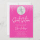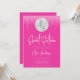 A modern disco sweet 16 invitation. This trendy invite features a silver disco ball and sparkle lights on a pink background.
