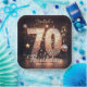 This design features a stunning "70" in a gold mosaic-sequin effect, set against a sophisticated black background filled with warm, glowing bokeh lights. Floating musical notes, golden stars, and disco-style bubbles surround the typography, creating a festive atmosphere perfect for a dance party or an elegant evening celebration.