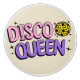 Colourful retro style "Disco Queen" text design with black and yellow disco ball decoration