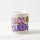 Colourful retro style "Disco Queen" text design with black and yellow disco ball decoration