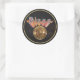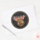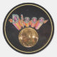 Round sticker to match our "Disco the Night Away" invitation with an image of a dazzling Disco ball and “Disco” in pink and yellow tubular letters in the night sky with a gold border. See matching custom-cut vinyl sticker, invitation, envelope, confetti, favour bag, favour tag, label and wrapping paper. See the entire Disco 70s Sticker collection in the INVITES | Stickers & Labels section.