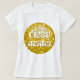 T-shirt with a fun and funky stylised "disco mirror tile look" printed pattern in shades of yellow gold and white, and 'disco mama' in retro style text. Can be used as a background for your own text, images and ideas. Available in all style options. Please note this is a printed digital art image, it does not shine or contain real mirrors or glitter.