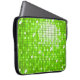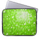 Laptop sleeve with a fun and funky stylised "disco mirror tile look" printed pattern in shades of green and white. Can be used as a background for your own text, images and ideas. Please note this is a digital art image, it does not shine or contain real mirrors or glitter, and is printed on a neoprene background. Design on one side only.