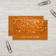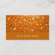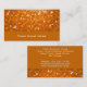 Business card with a glamourous stylised "disco mirror tile look" printed pattern in shades of orange and white, and white text on an orange background.. Can be used as a background for your own text, images and ideas. Please note this is a printed digital art image, it does not shine or contain real mirrors or glitter.