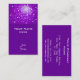 Business card with a glamourous stylised "disco mirror tile look" printed pattern in shades of purple, and white text on a purple background.. Can be used as a background for your own text, images and ideas. Please note this is a printed digital art image, it does not shine or contain real mirrors or glitter.