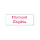 The text "Discount Eligible" or your own custom text set in red (or the colour of your choosing) ink highlights this handy self-inking stamp.