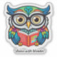 This animated sticker showcases a wise owl in glasses, immersed in a book, adorned with gold accents. Set against a light textured background, it captures the joy of reading and inspires a love for learning. Perfect for educational themes!. "Original Image was generated by Meta AI. AI generated artwork. Licensed under CC BY-SA 4.0.