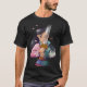 I give wanted to give this a 4 instead of a 5 because these Basic DARK T0shirts run unexpectedly SLIM or Narrow. Which is great if you do not have a potbelly, but I have a paunch. It isn't the shirt's fault that I've got a beer belly. The design and shirt itself is a quality cotton shirt. The color is more of a deep purple, but still a very pretty color. The Basic DARK T-shirts run a bit SLIMMER than the Basic Ts. The neck is a fraction narrower (or seems to be narrower) also. I'm a paunchy middle-aged woman and my neck is 12 inches (31cm) thick and the neckline fell about the same as in the photo of the man, and I had the desire to tug it a bit. So if you're a thick necked man or like loose shirts, be aware these are slimmer shirts. Once I get rid of my lockdown paunch it'll look great. The shirt washed well in cold water with no apparent bleeding. We don't have a dryer, so it hung dry. Did not shrink. Love the colors and the design. The design looks smaller on my shirt than it does on the model on-line. But still, it looks good on the shirt. The printing looks as it does on the model, just the size seems fractionally smaller. Washed garment in cold water, hung dry and design appeared unaffected.