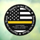 Forever In Our Hearts ! Honour your beloved 911 dispatcher and with this Thin Gold Line Dispatcher Memorial window decal in an American flag black and gold design in dispatcher flag colours. Personalise with your dispatchers's name, and EOW date. This thin gold line police dispatcher memorial window sticker will be a treasured keepsake to honour a 911 dispatcher, police and fire dispatchers and emergency telecommunicators. Perfect for police departments to honour a dispatcher. COPYRIGHT © 2020 Judy Burrows, Black Dog Art - All Rights Reserved. Dispatcher 911 Memorial Forever In Our Hearts Window Cling